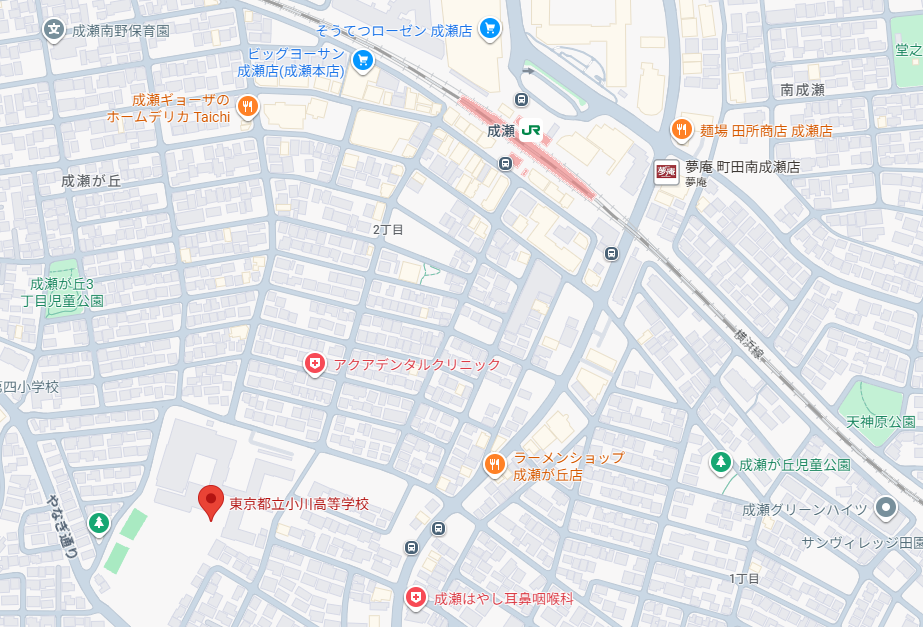 この高校は、東京都町田市にある公立高校で、最寄り駅はJR成瀬駅になります。
