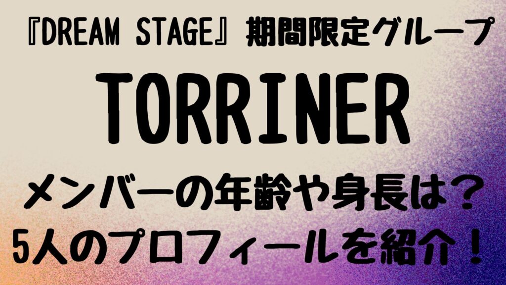 2026年1月からスタートするTBS新ドラマ「DREAM STAGE」の期間限定5人グループ『TORRINER(トリナー)』が結成されました。 『TORRINER(トリナー)』は、主要グループ『NAZE(ネイズ)』のライバルグループという設定になっています。 ドラマ内での期間限... -