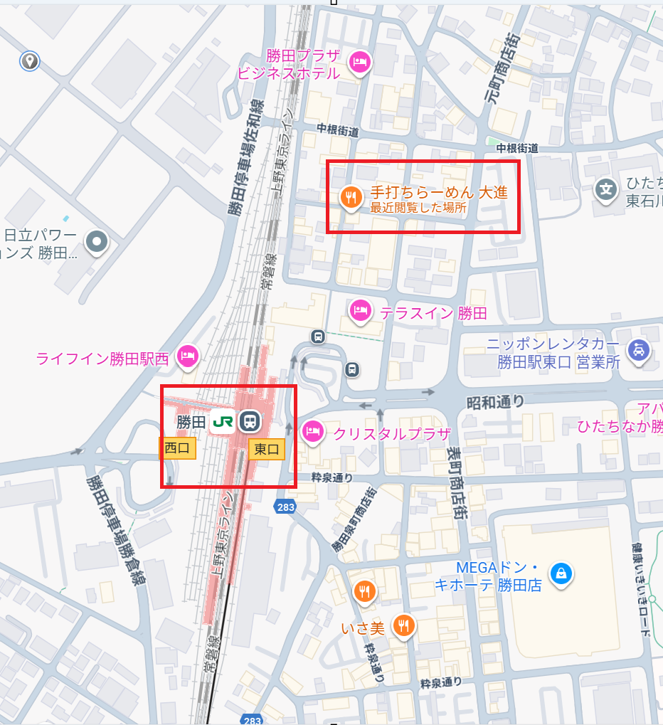 最寄り駅は常磐線の勝田駅となります。ほとんど駅前なので徒歩で5分程度ですね。