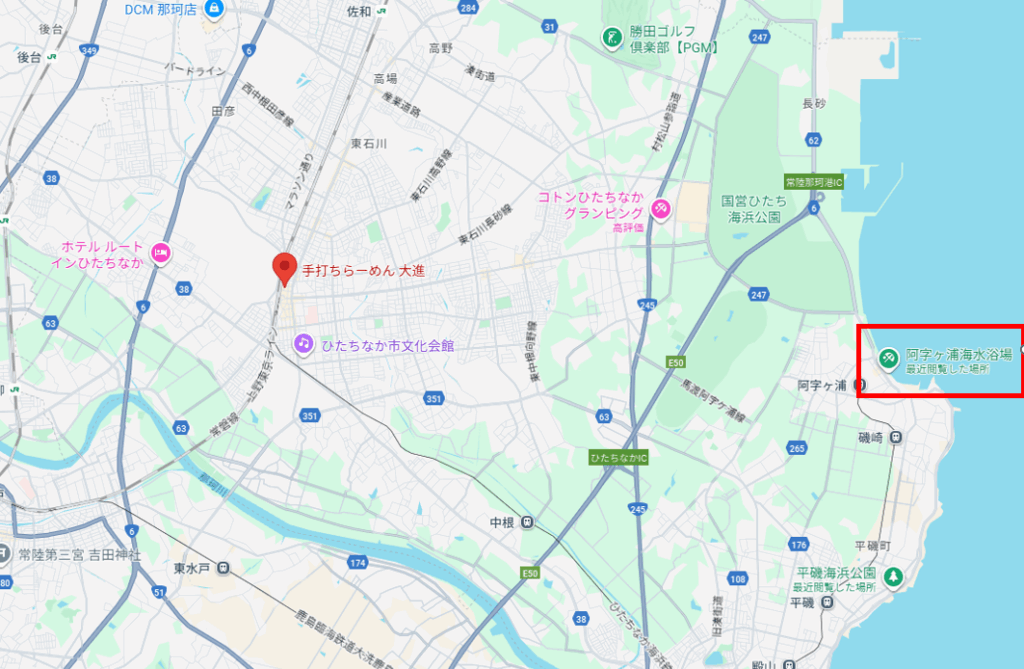 道中で立ち寄った海は、「阿字ヶ浦海水浴場