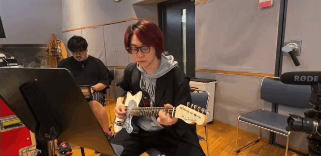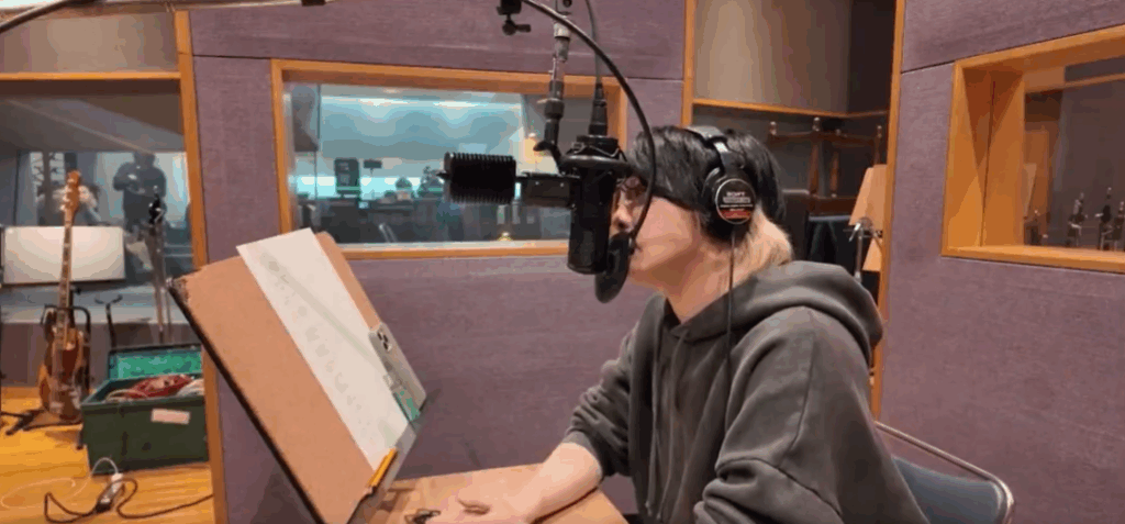 こちらはレコーディング中の大森 元貴さんの様子です。ジャケットにパーカーでしょうか?
