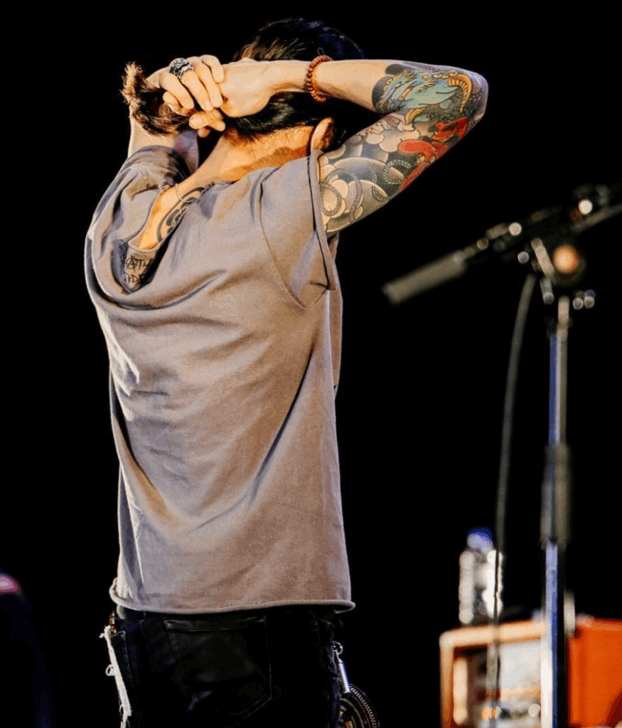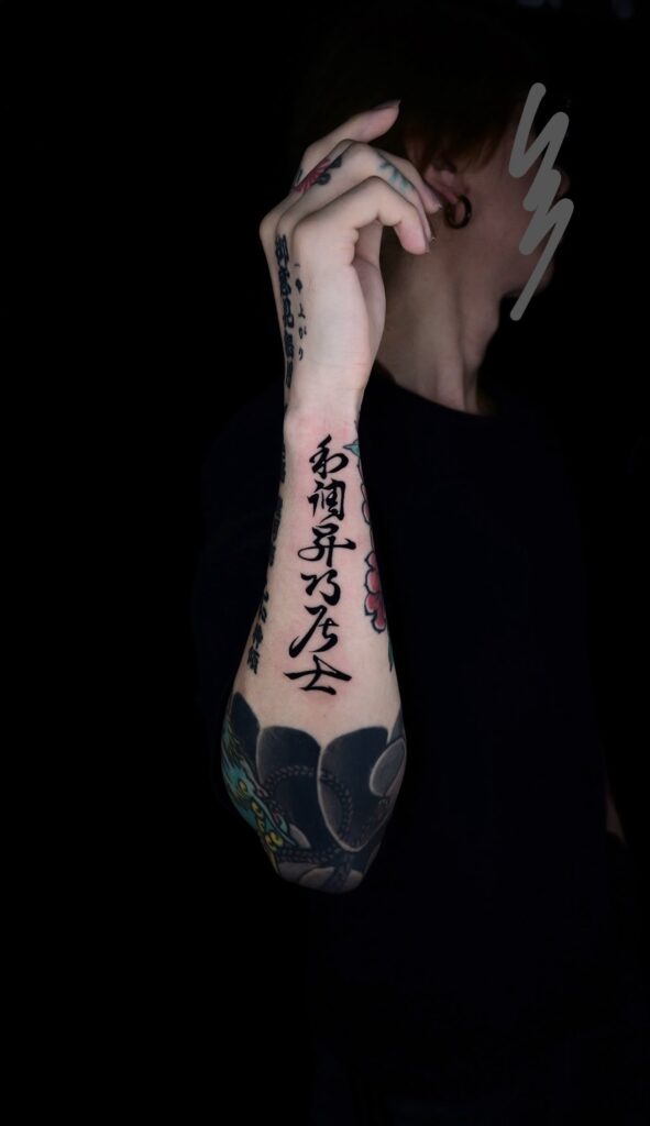 手の内側に花柄のタトゥーが見えますが牡丹でしょうか?実はこの柄は首にも似たようなタトゥーが入っていましたね。なので南洋桜でしょうか?