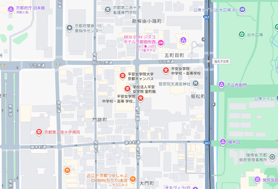 私立平安女学院中学校は、1895年に大阪から京都に移転して以来、〒602-8013 京都市上京区下立売通烏丸西入に位置しています。