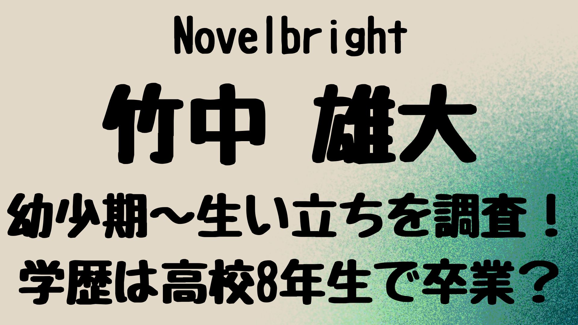 そんな竹中雄大さんがどんな人なのか。幼少期から生い立ち、学校生活や経歴について調べてみました。